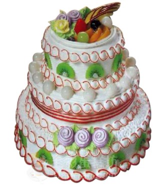 • 三層圓形蛋糕,由奶油,水果,鮮各色玫瑰等材料組成,絕對新鮮.美味可口.